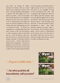 The first part of the book is an extensive documented graphical pictorial grow guide based on a 6 hour DVD set made whilst working on behalf of the University of London.  This University holds a Home Office License to cultivate cannabis for medical research.  The doctors, without sounding cruel, are not botanically blessed with green fingers so some 5 years ago we were called upon to help design, construct, and install a fully operational  hydroponics grow room.  We were then asked to help grow top quality cannabis for the University to ensure high active ingredients for their medical studies.  As well as educating them on the finer art of growing plants hydroponically, we got to test certain methods and techniques, shifting the shit from shinola so we got to expose the fact from fiction.