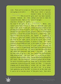 The first part of the book is an extensive documented graphical pictorial grow guide based on a 6 hour DVD set made whilst working on behalf of the University of London. This University holds a Home Office License to cultivate cannabis for medical research. The doctors, without sounding cruel, are not botanically blessed with green fingers so some 5 years ago we were called upon to help design, construct, and install a fully operational hydroponics grow room. We were then asked to help grow top quality cannabis for the University to ensure high active ingredients for their medical studies. As well as educating them on the finer art of growing plants hydroponically, we got to test certain methods and techniques, shifting the shit from shinola so we got to expose the fact from fiction.