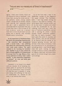 The third section includes 7 excerpts taken from rare and in some cases almost unavailable literature written during the Victorian era 1837-1901. These pieces of literature encompass the themes of hashish intoxication.