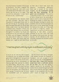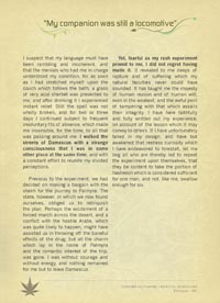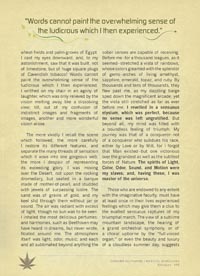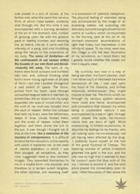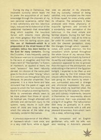 The third section includes 7 excerpts taken from rare and in some cases almost unavailable literature written during the Victorian era 1837-1901. These pieces of literature encompass the themes of hashish intoxication.