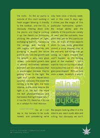 The first part of the book is an extensive documented graphical pictorial grow guide based on a 6 hour DVD set made whilst working on behalf of the University of London. This University holds a Home Office License to cultivate cannabis for medical research. The doctors, without sounding cruel, are not botanically blessed with green fingers so some 5 years ago we were called upon to help design, construct, and install a fully operational hydroponics grow room. We were then asked to help grow top quality cannabis for the University to ensure high active ingredients for their medical studies. As well as educating them on the finer art of growing plants hydroponically, we got to test certain methods and techniques, shifting the shit from shinola so we got to expose the fact from fiction.